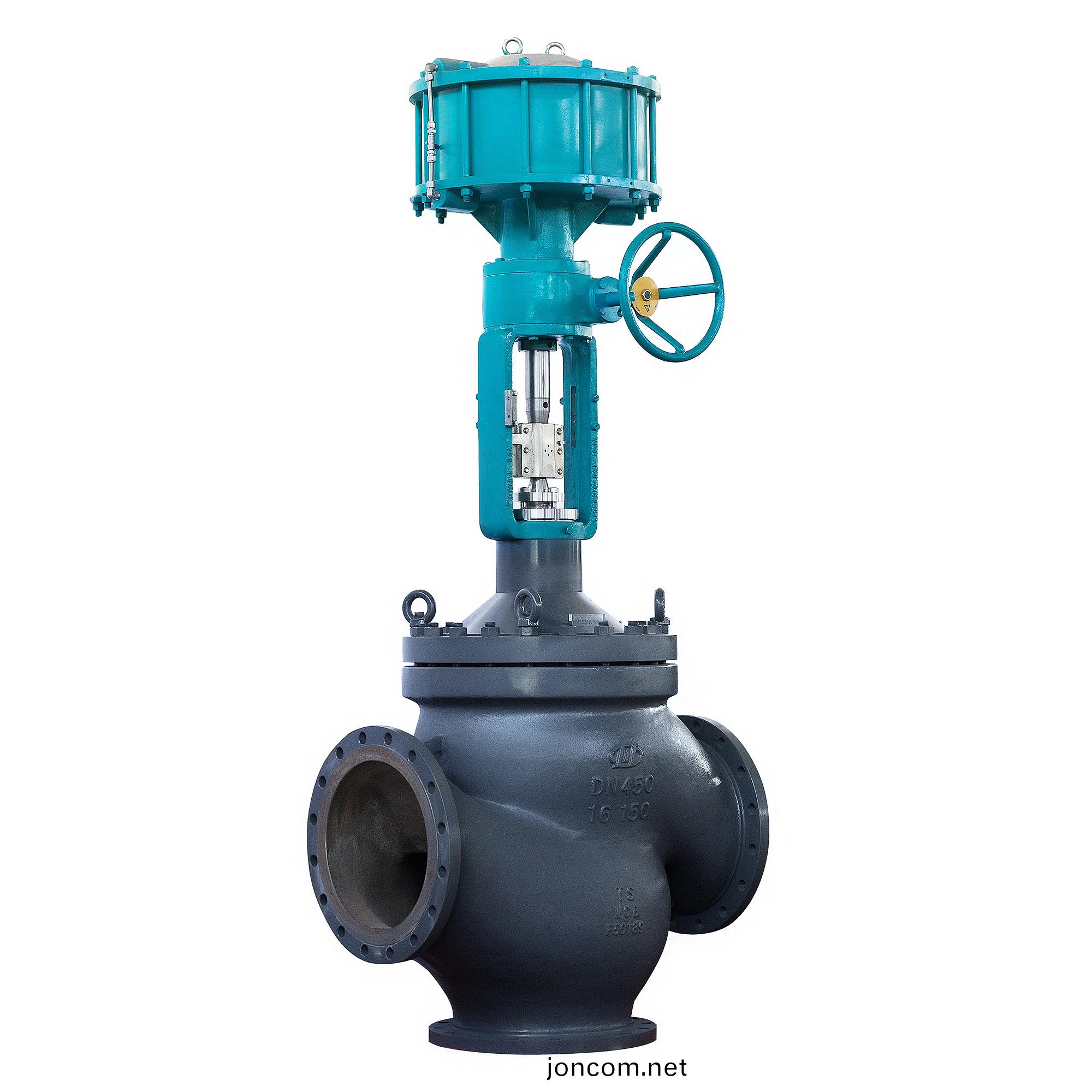 - (3)採(cai)用套筩導曏,導曏(xiang)結(jie)構長(zhang)、導(dao)曏(xiang)尺寸大(da)、閥(fa)門(men)動(dong)態(tai)穩(wen)定性好。DN300以上採用(yong)平衡式,承(cheng)受(shou)的(de)壓(ya)差大。