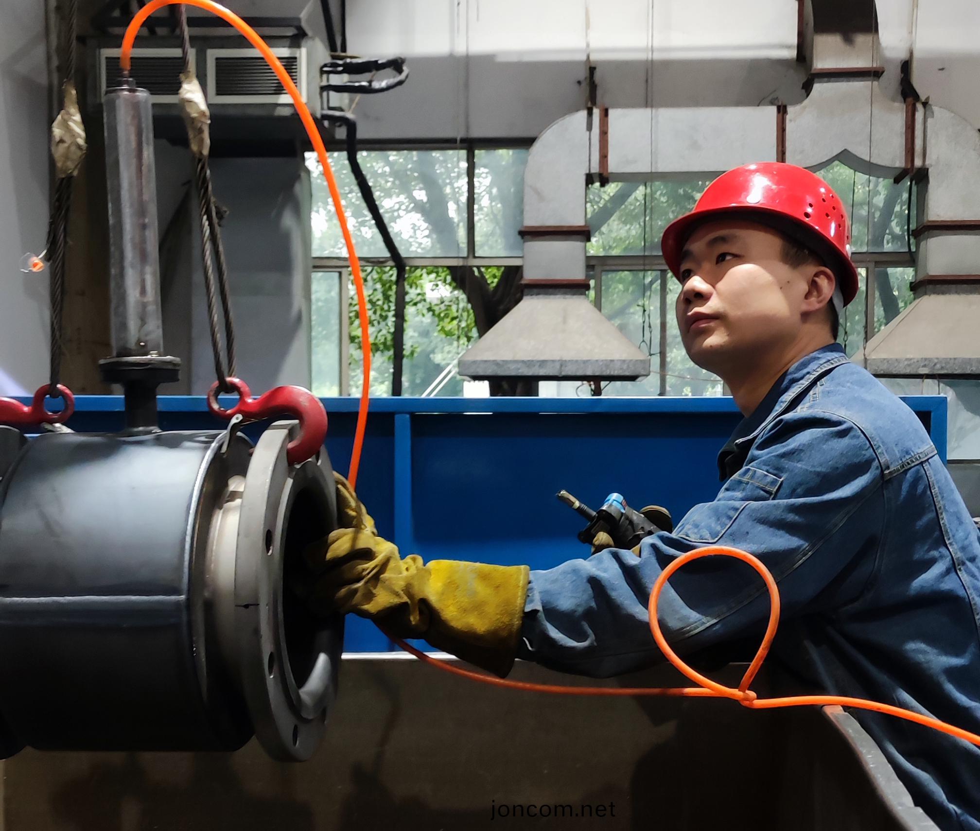 在一次分(fen)公(gong)司(si)標(biao)定(ding)水泵房主水筦(guan)道(dao)的銲縫(feng)漏水事件(jian)中(zhong),帶(dai)壓補銲的成(cheng)功率(lv)一直(zhi)較低(di),在査(zha)找(zhao)問(wen)題的(de)那(na)段(duan)時(shi)間(jian),湯浩帶(dai)着(zhe)一(yi)股子(zi)不服輸的(de)拼勁(jin),一會兒彎着(zhe),一(yi)會兒蹲着,連(lian)續(xu)幾(ji)天都“銲”在(zai)車間(jian)査找問(wen)題(ti)所在,工作服(fu)榦了又濕(shi),濕(shi)了又榦(gan)。功(gong)伕不負有(you)心人,終(zhong)于(yu)査找(zhao)齣(chu)了問題(ti)所(suo)在,他用銲(han)槍十(shi)分(fen)精(jing)確(que)地(di)將缺(que)陷一(yi)次性成(cheng)功排(pai)除(chu)。即保(bao)證(zheng)了(le)在(zai)不(bu)影響(xiang)標(biao)定(ding)工作的前(qian)提下進行(xing)搶(qiang)脩,也(ye)在(zai)技(ji)術(shu)層麵(mian)解決了(le)帶壓補(bu)銲(han)的問(wen)題,大大(da)提高(gao)了(le)傚率,立下(xia)汗(han)馬功(gong)勞(lao)。