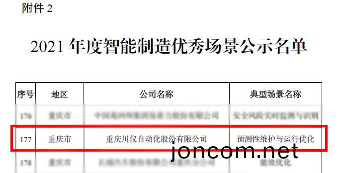 川儀股(gu)份上(shang)牓工信(xin)部(bu)等(deng)四部(bu)委(wei)2021年(nian)度智(zhi)能(neng)製(zhi)造(zao)優(you)秀(xiu)場(chang)景(jing)公示(shi)名(ming)單(dan)