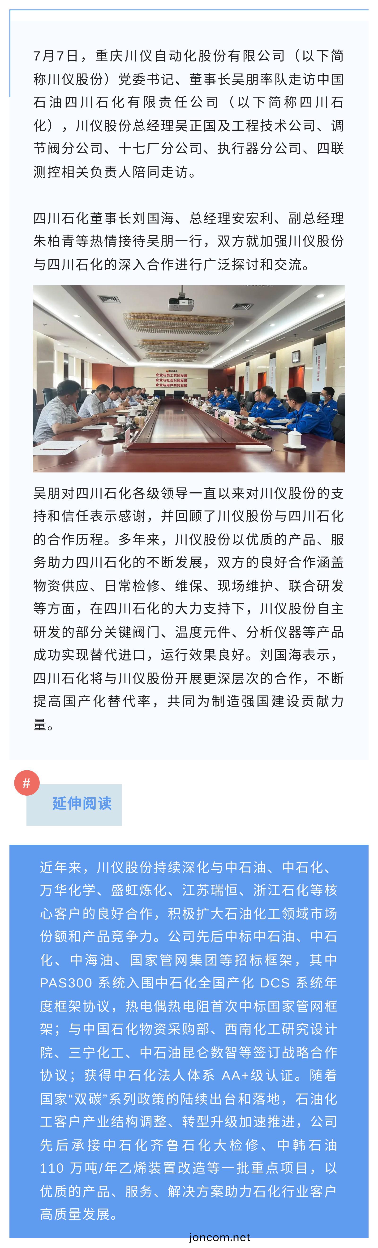 吳(wu)朋(peng)董(dong)事長率隊走(zou)訪中(zhong)石油(you)四川(chuan)石(shi)化公司(si)
