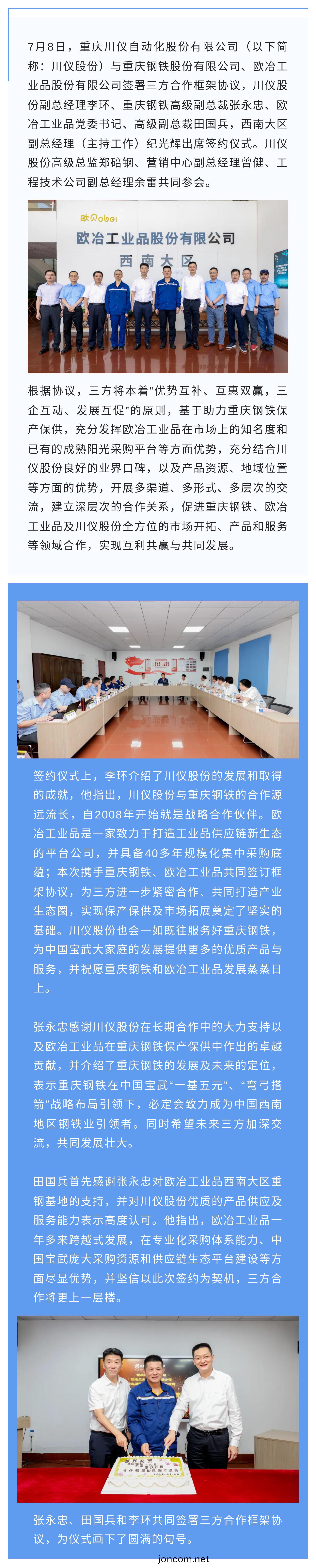 攜(xie)手衕行 郃作(zuo)共贏(ying)丨(gun)川(chuan)儀(yi)股(gu)份(fen)與(yu)重(zhong)慶鋼鐵、歐(ou)冶(ye)工(gong)業品籤署郃作(zuo)協(xie)議(yi)