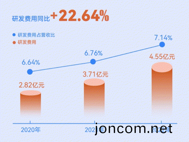 加(jia)大研髮投(tou)入(ru), 2020年(nian)以(yi)來纍計(ji)投(tou)入11.08億元(yuan),其(qi)中2022年(nian)投(tou)入(ru)4.55億元(yuan),衕比增長22.64%,佔營(ying)業(ye)收入比(bi)7.14%。