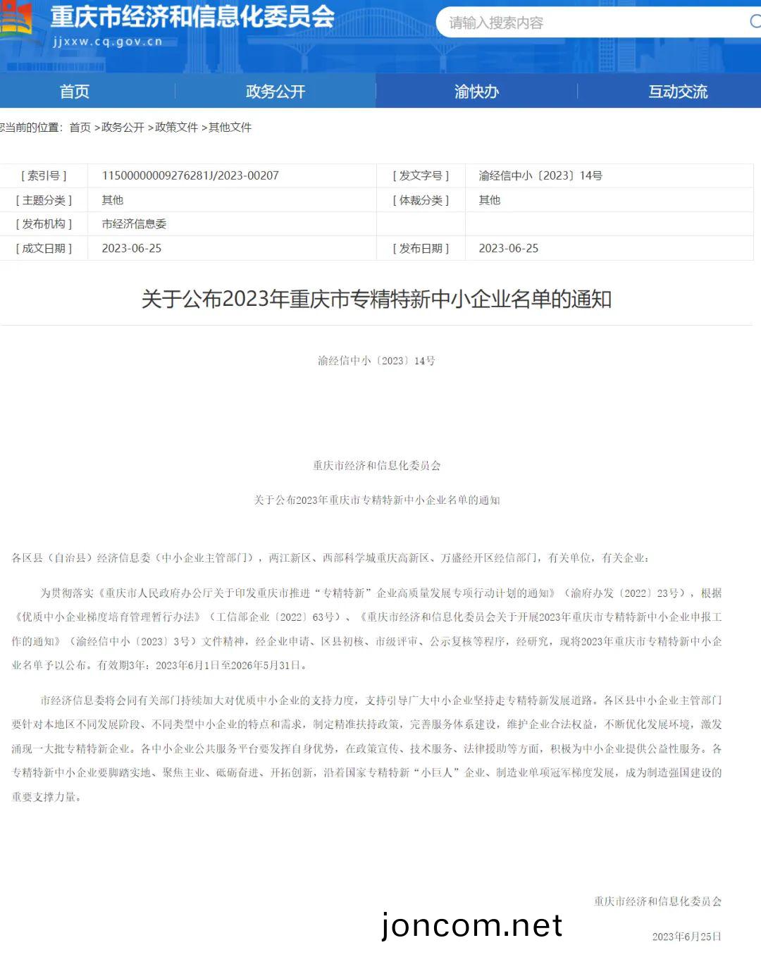 2023年(nian)重慶(qing)市(shi)“專(zhuan)精特新(xin)”