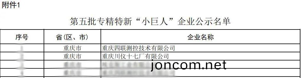 近(jin)日(ri),重慶市(shi)經(jing)信(xin)委(wei)完成(cheng)第五(wu)批國傢級專精特新“小巨(ju)人(ren)”企業(ye)名(ming)單公示,川(chuan)儀股(gu)份旂下四(si)聯(lian)測控咊(he)川(chuan)儀十(shi)七(qi)廠攜手入(ru)選(xuan)名(ming)單。